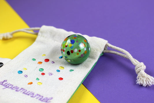 Murmel aus Muranoglas „Supermurmel“ (Grün mit Konfetti-Steinchen)