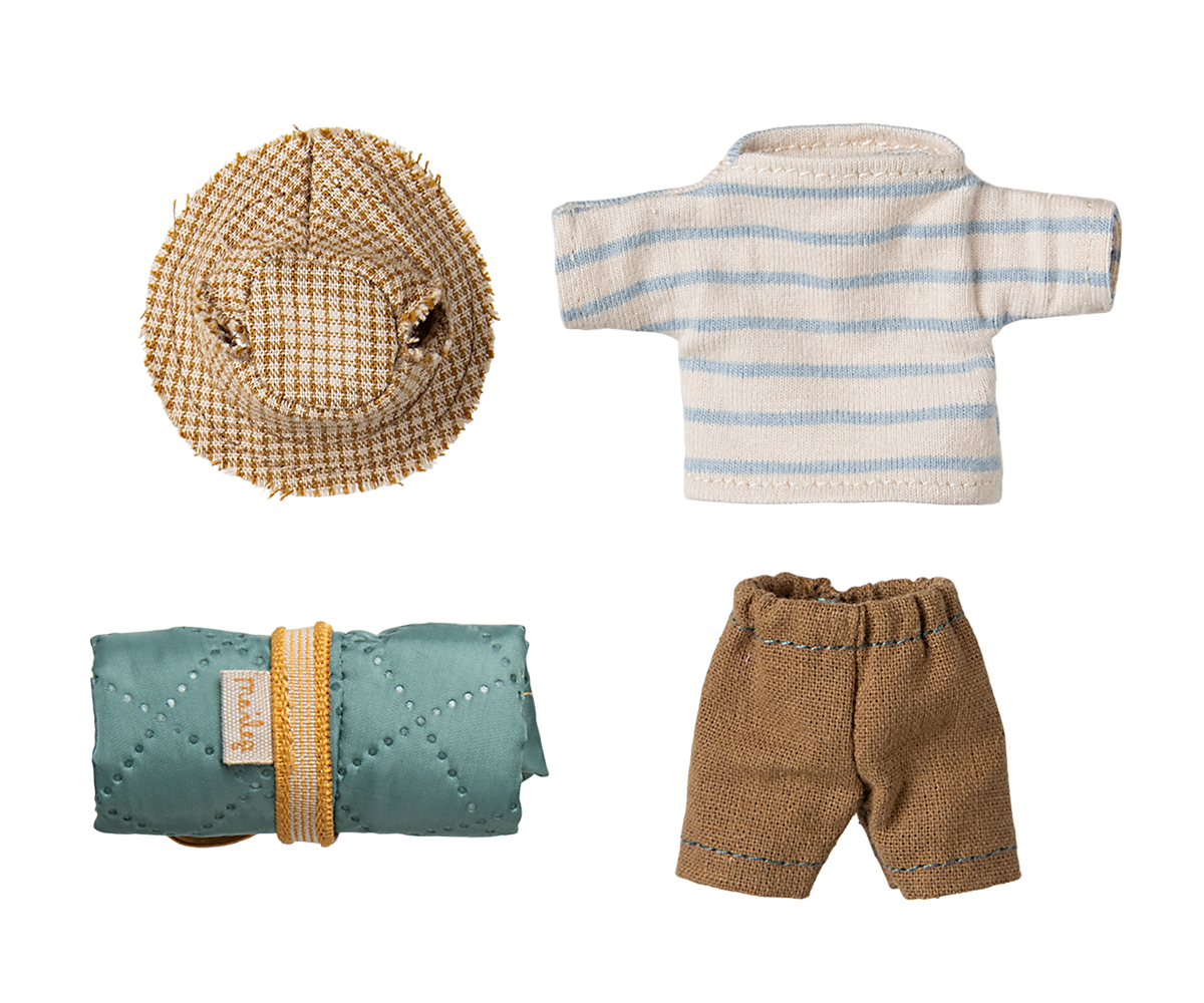 Diese Maus ist für einen Wanderausflug in der Natur bestens gerüstet. Sie ist für Spaziergänge angezogen und bringt ihren Schlafsack mit. Sie hat Magnete in den Händen. Füge weitere Accessoires aus der Wanderer-Kollektion hinzu.