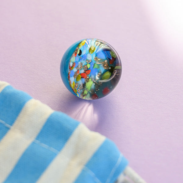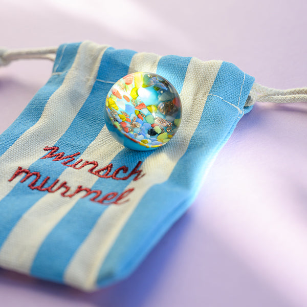 Murmel aus hochwertigem Muranoglas im Stoffbeutel.